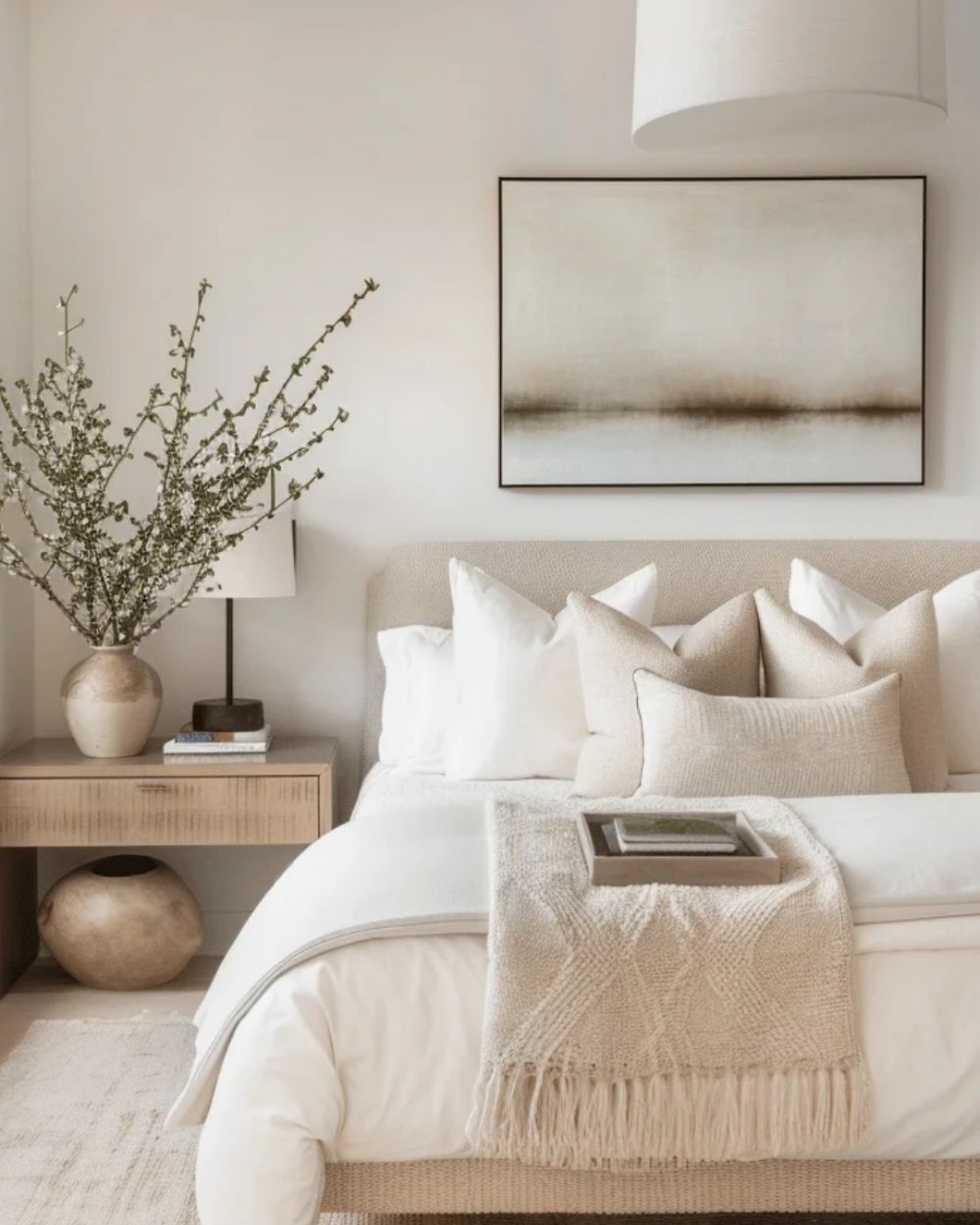 Textiles: Cream rugs, throw blankets, and pillows add warmth and depth, and they layer beautifully with other neutrals.