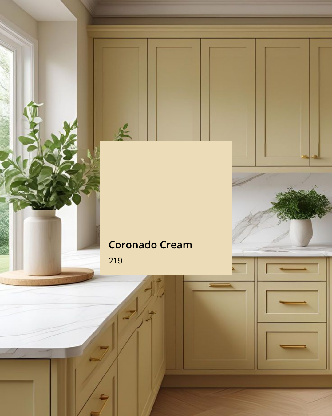 Warm, buttery, and gently golden, Coronado Cream brings a sunlit feel to any space. It’s especially beautiful on cabinetry in a yellow kitchen—classic yet cheerful, it makes the whole room feel inviting and full of light. Pair it with creamy trim, brushed brass hardware, and natural textures for a look that’s both timeless and uplifting.