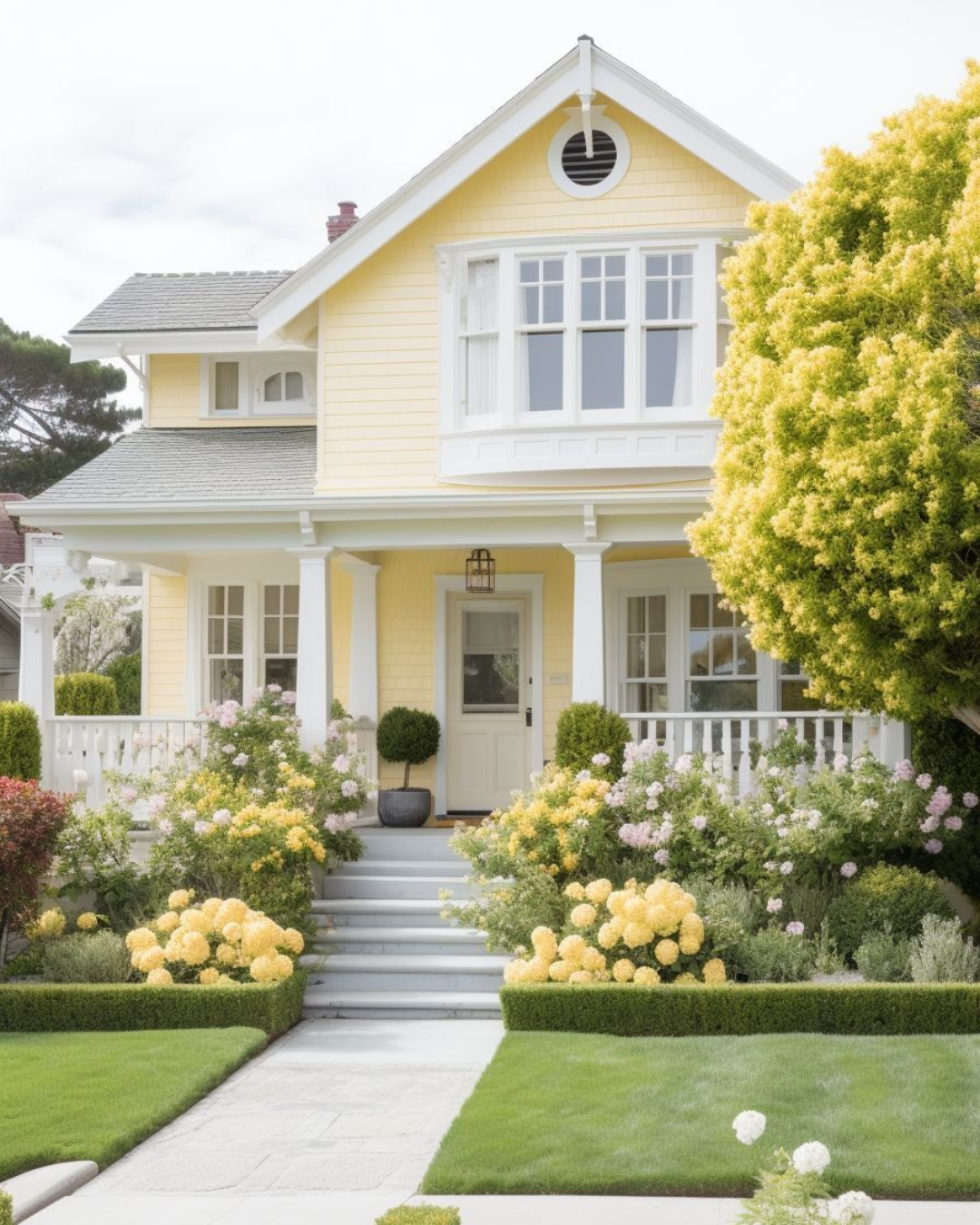 For outdoor spaces, I love using pops of yellow on front doors, garden furniture, or planters. It pairs beautifully with green landscapes and instantly makes an entryway feel friendly and lived-in—especially in spring and summer when everything outside vibrates with life.
