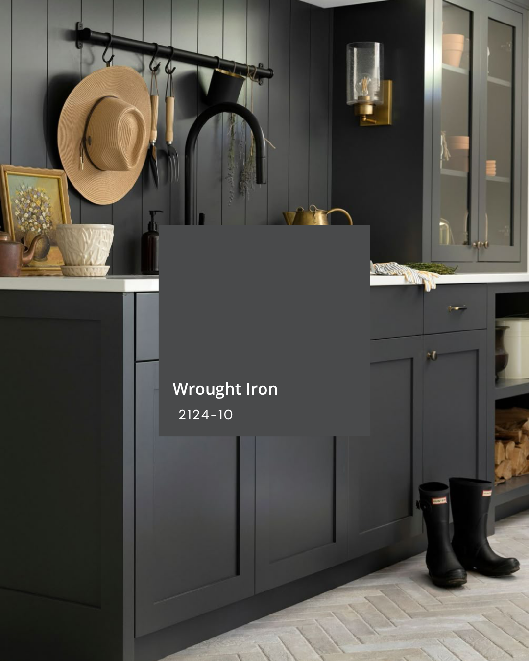 Wrought Iron is a beautiful in-between color that reads as a softened charcoal with a subtle, sophisticated undertone. It’s a great choice for cabinetry, millwork, and exterior accents because it feels dark but not flat. It pairs especially well with warm whites, slate tones, and natural textures for a finish that feels balanced and intentional.
