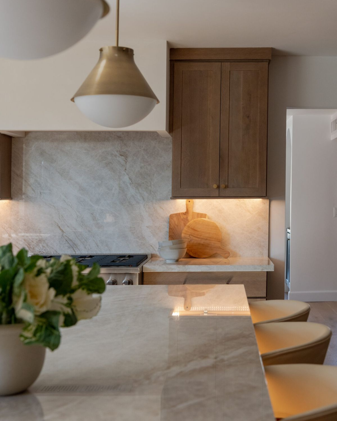 Lighting also makes a big difference. Good natural light or well-placed pendants and under-cabinet lighting can highlight the veining and bring out the warmth in the stone’s tones.